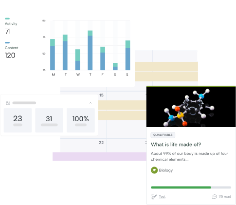 Realiza un seguimiento del progreso de las tareas, mide el resultado de tu contenido y valida qué estrategias funcionan para cada grupo, materia, estilo de aprendizaje y dificultad. Descubre nuevas métricas para crear planes de acción adaptados a cada tipo de alumno.