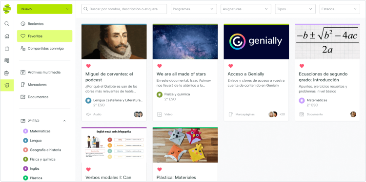 Almacena todos tus contenidos y actividades en un solo lugar, organizados por temas y con un potente sistema de etiquetado para diferenciar y filtrar por metodología, categorías, dificultad… Aumenta y perfecciona tus recursos de un año a otro y adapta sin esfuerzo tus sesiones a cada nuevo grupo